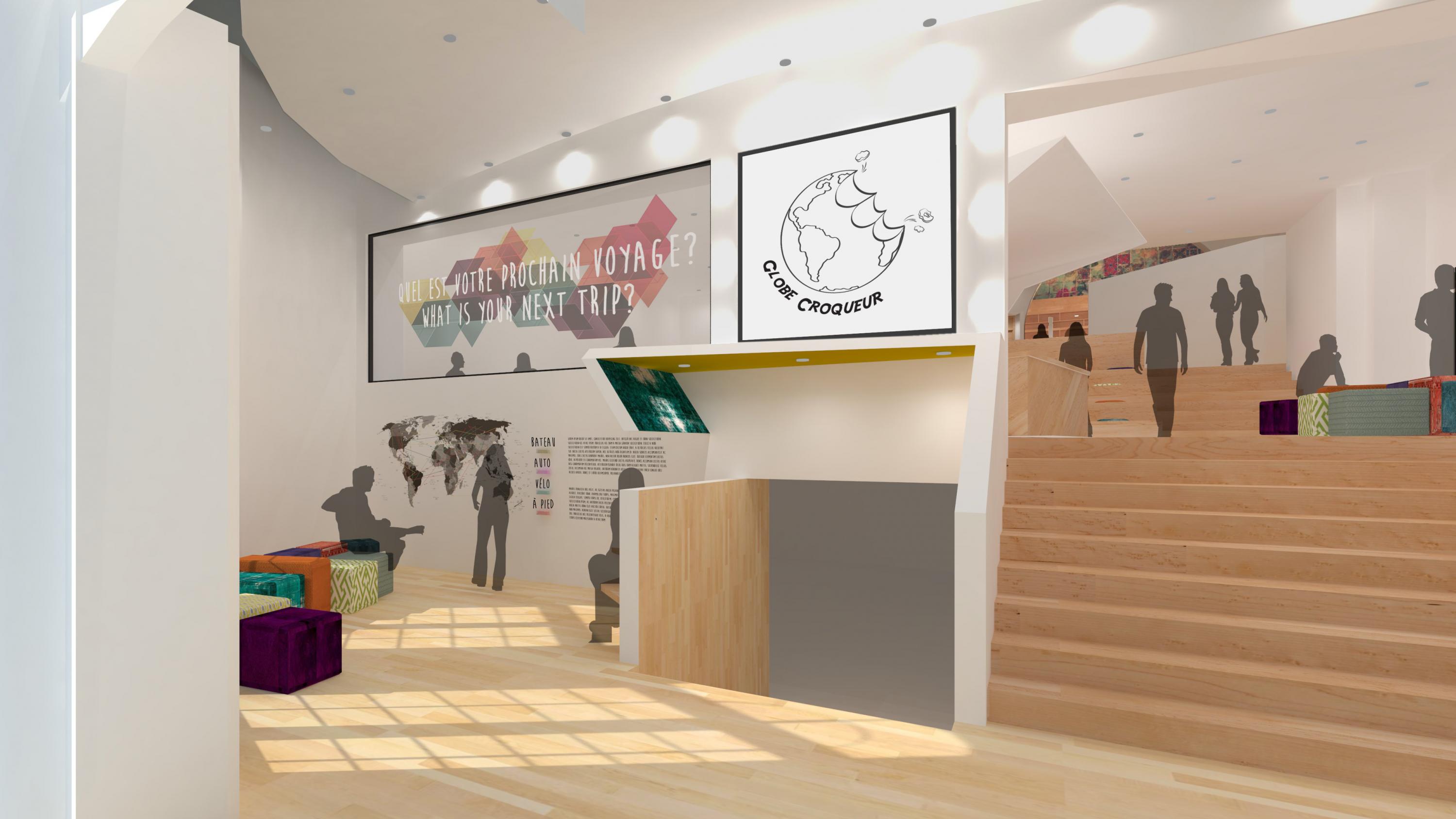 Le centre de voyage Globe Croqueur a été conçu de façon à réunir tous les services reliés au voyage pour ainsi lui donner la notoriété d’être une adresse incontournable. Espace ludique et interactif, c’est avant tout un lieu rassembleur destiné à l’aventurier. La philosophie du lieu respecte une éthique et se rattache à l’essence même du voyage qui se définit par le partage et l’échange.