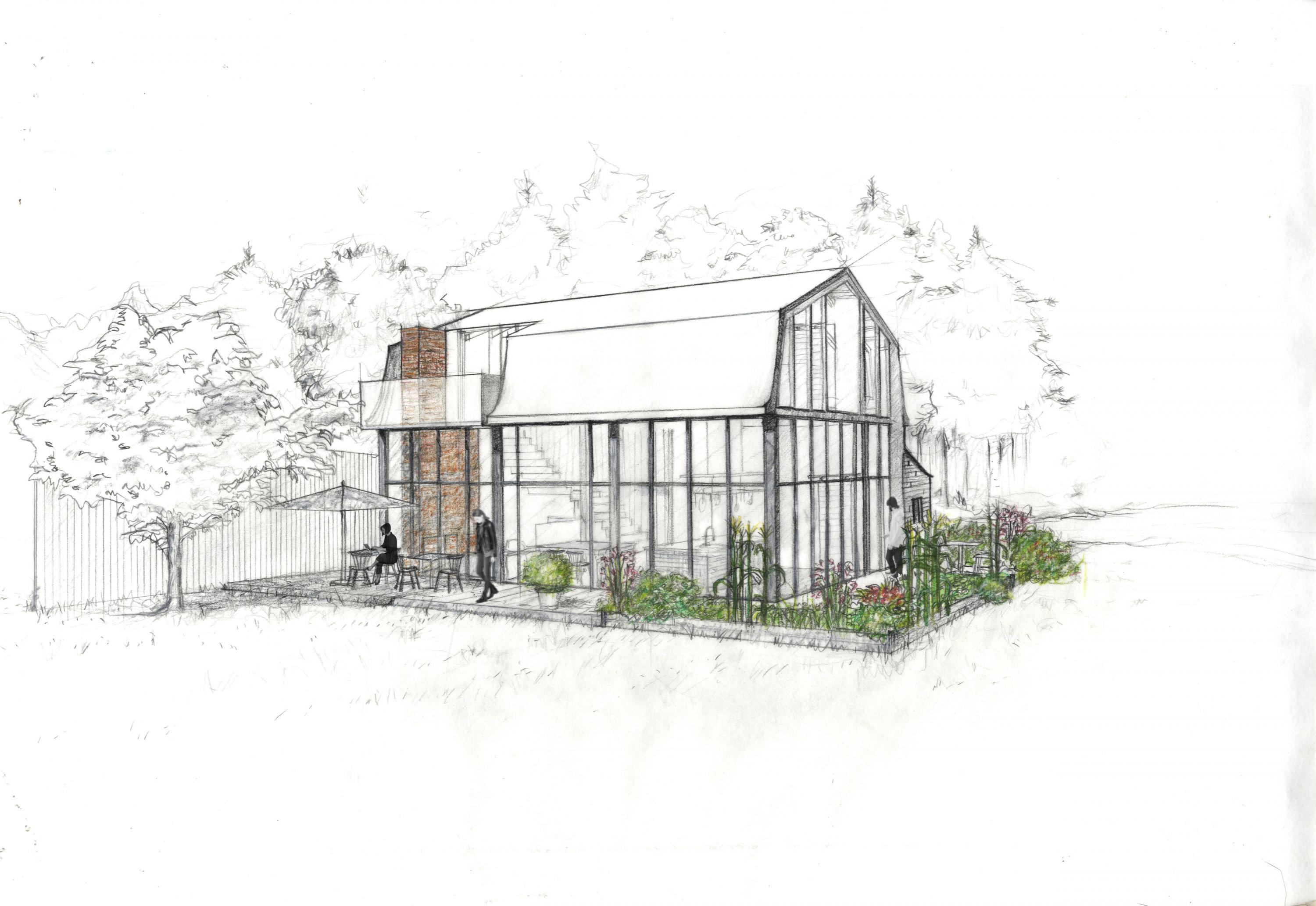 Ce projet véhicule aussi l'idée que le paysage se doit d'être un des éléments les plus importants en vitrant deux pans de la grange afin que le visiteur puisse littéralement s'immerger dans le décor.